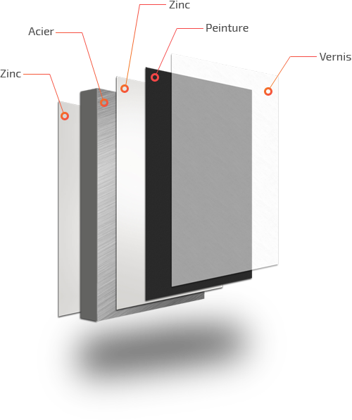 La protection de l'acier est assurée par la finition spécial zinc-polymère ZiPoFlex®.
