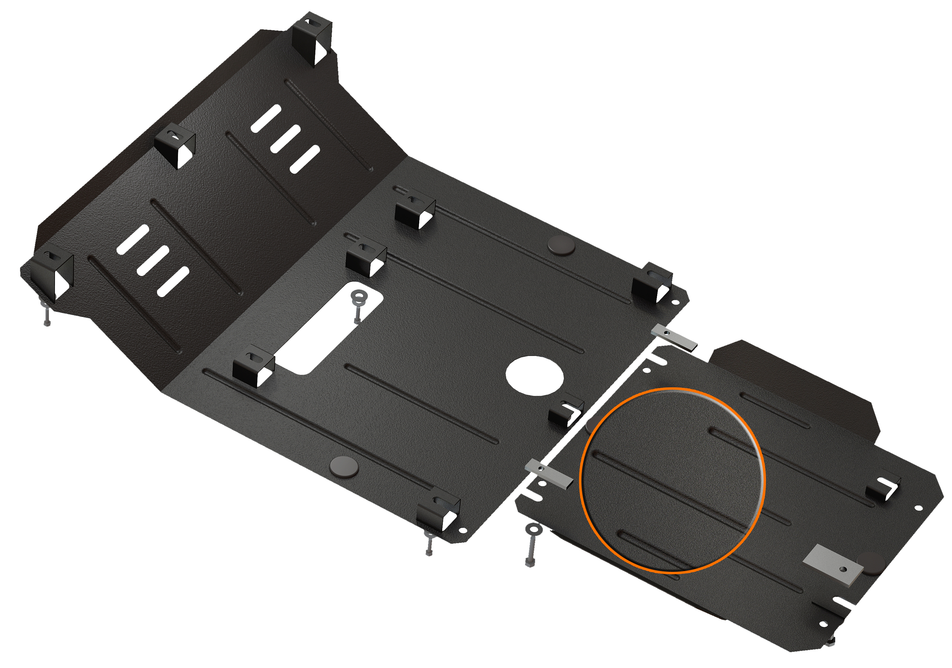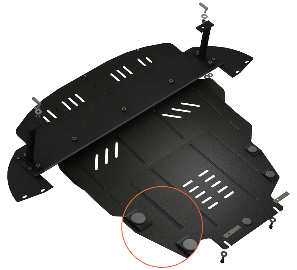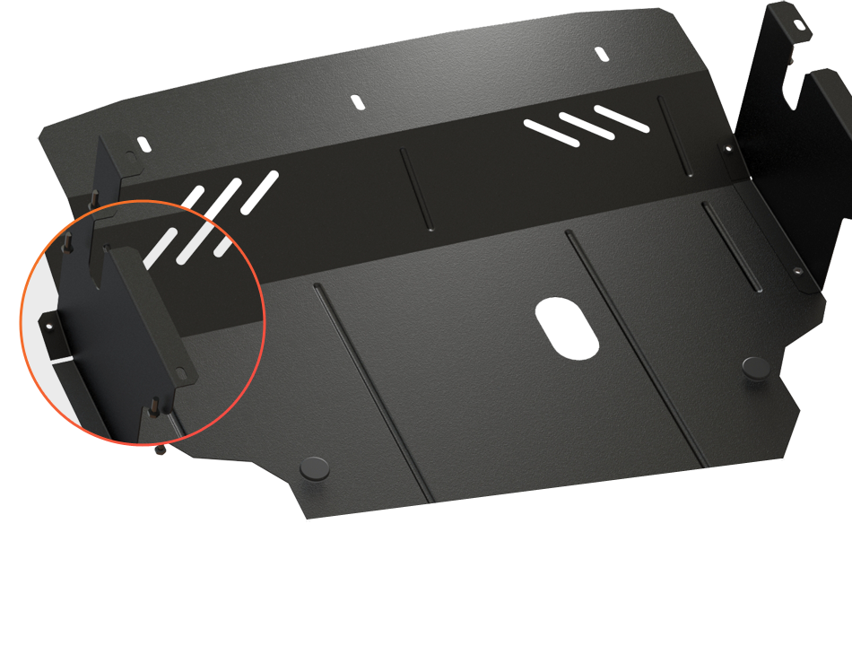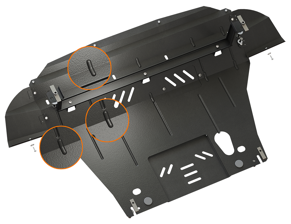 En combinant les technologies les plus avancées, nous avons créé une plaque de protection en acier légère et fiable. Pour cela, il a fallu y insérer des nervures pour renforcer sa rigidité.
