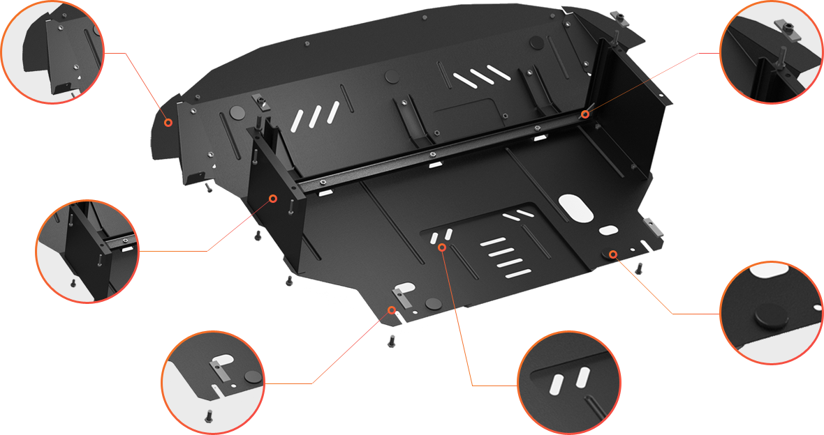 Afin de créer une protection parfaite pour le moteur, nous avons utilisé les technologies et les brevets les plus révolutionnaires, nous avons minutieusement réfléchi à tout, et nous l'avons mis en œuvre en acier.